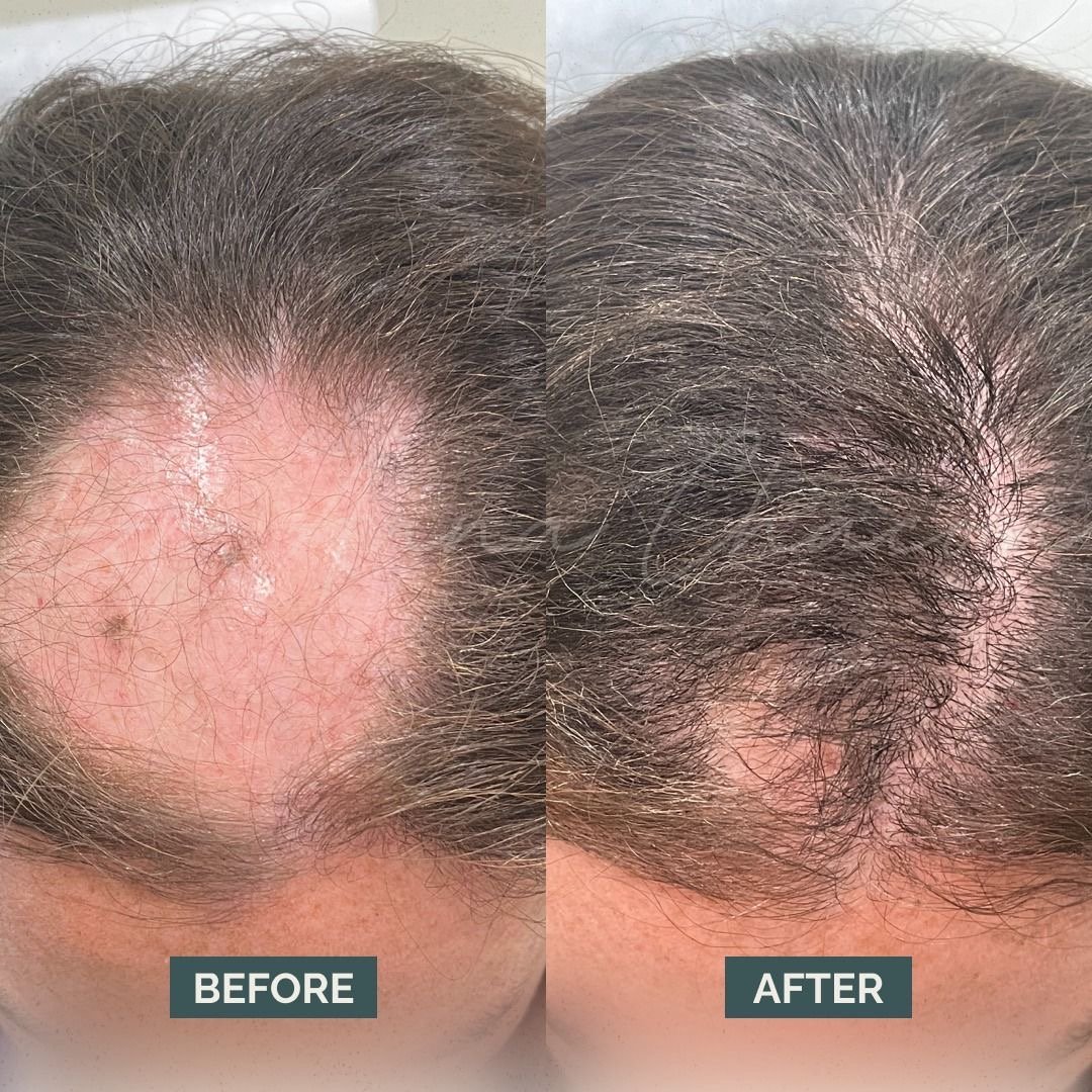 Leveraging the latest advancements in hair follicle science, this treatment delivers nine bio-identical recombinant growth factors that specifically target hair follicle replication and regeneration. Formulated with hyaluronic acid, it also bone marrow derived, has anti-inflammatory recombinant growth factors and cytokines each clinically shown to stimulate follicular activity. Together, these powerful components represents a new era of hair health, enhancing follicle vitality, promoting regeneration and supporting long term hair health and density.